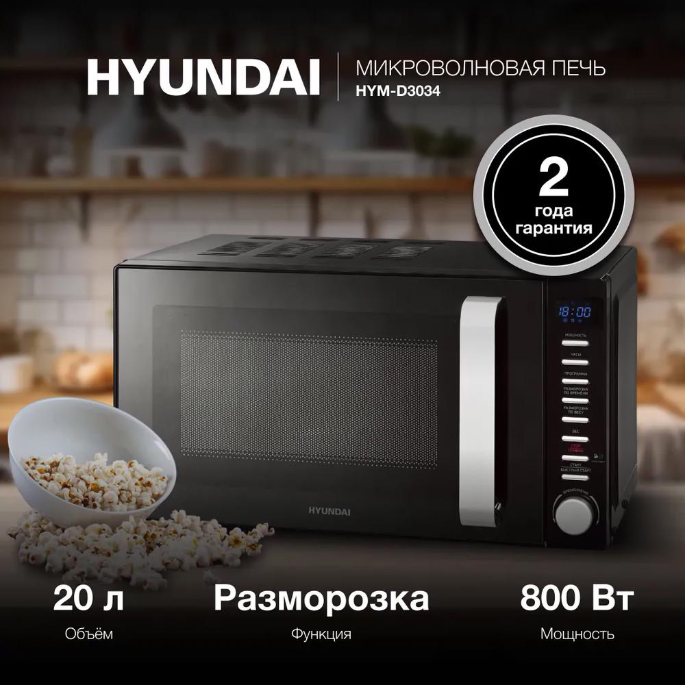 СВЧ печь соло 20л. HYUNDAI HYM-D3034 чёрн./хром.